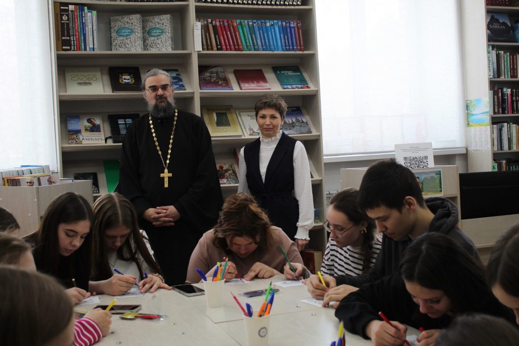 Отец Владимир Данилко, иерей Кафедрального собора Благовещенья Пресвятой Богородицы, провел увлекательную лекцию о празднике, детально разъяснив студентам исторические аспекты появления и распространения книг на Руси. Они познакомились с первым русским первопечатником, выяснили, какую книгу впервые отпечатал Иван Фёдоров, а также поучаствовали в занимательных викторинах. Попробовали провести первые беседы друг с другом на старославянском языке.
